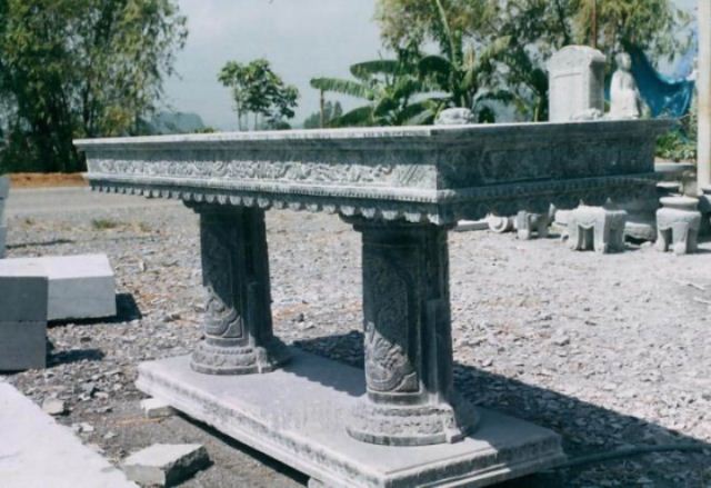 Bàn lễ đá làm từ đá xanh nguyên khối được các bàn tay của nhân viên công ty cổ phần xnk đá mỹ nghệ Ninh Bình chế tác.