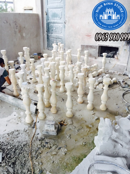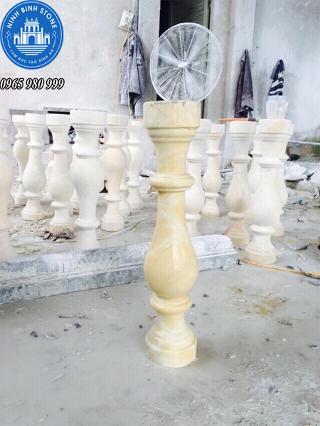 Con tiện được làm bằng đá trắng tự nhiên. So với các sản phẩm con tiện bằng gỗ, gốm, sứ, inox thì con tiện lan can bằng đá tự nhiên có độ bền theo thời gian cao hơn, không bị nứt rạn.