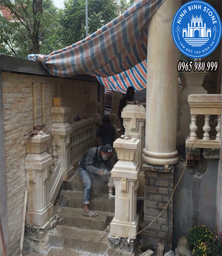 3 người thợ giàu kinh nghiệm đang“chăm chút” cho công trình. Các công đoạn được giám sát nghiêm ngặt bởi các kỹ sư thiết kế của Ninh Bình Stone