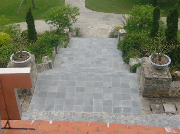 Đối với lối đi trong vườn: cân nhắc tới đá cubic, tấm đá hoa cương, bazan xếp cách nhau, tạo các khoảng hở kết hợp cùng sỏi hay cỏ. Đây là sự kết hợp cực kì truyền thống nhưng không bao giờ lỗi mốt, tạo sự hòa hợp giữa không gian vườn.