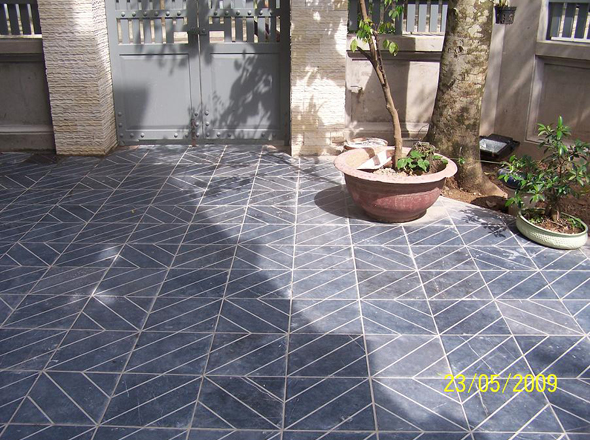 Đối với khoảng sân: thường sử dụng đá tự nhiên lát liền mạch, nếu quá nhàm chán với kiểu sắp xếp đều tăm tắp hoặc so le của từng viên đá, hãy cân nhắc thử tạo nên hoa văn đá từ nghệ thuật sắp xếp hay kết hợp 2 loại đá có màu sắc khác nhau, thông thường là trắng đục, xám.