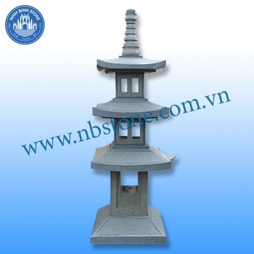 Đèn đá được thiết kế 3 mái, bên trên là trụ được chế tác tỉ mỉ, tinh xảo.