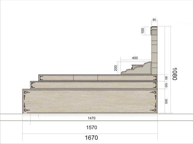 Thớt đế ( Thớt 1 ) : KT : R 89 cm x D 167 cm X C127 cm.