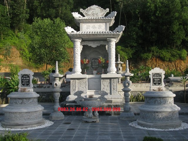 Mộ đá 03 làm từ đá tự nhiên, nguyên khối, có tính chất rất bền, chịu được mọi thời tiết khắc nghiệt không thấm nước, không phai màu, không rạn vỡ, tồn tại hàng trăm năm. Mộ đá 03 được thiết kế 2 mái, mẫu thiết kế mới đẹp
