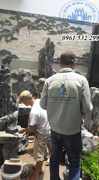 Những người thợ của Ninh Bình Stone đang thi công hòn non bộ