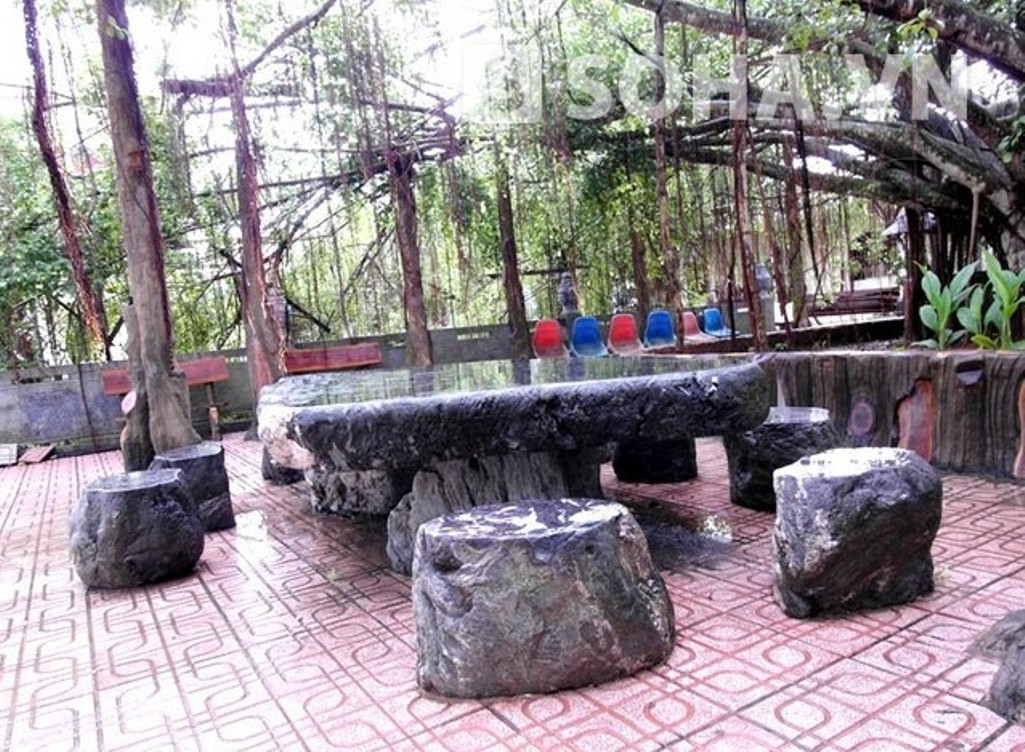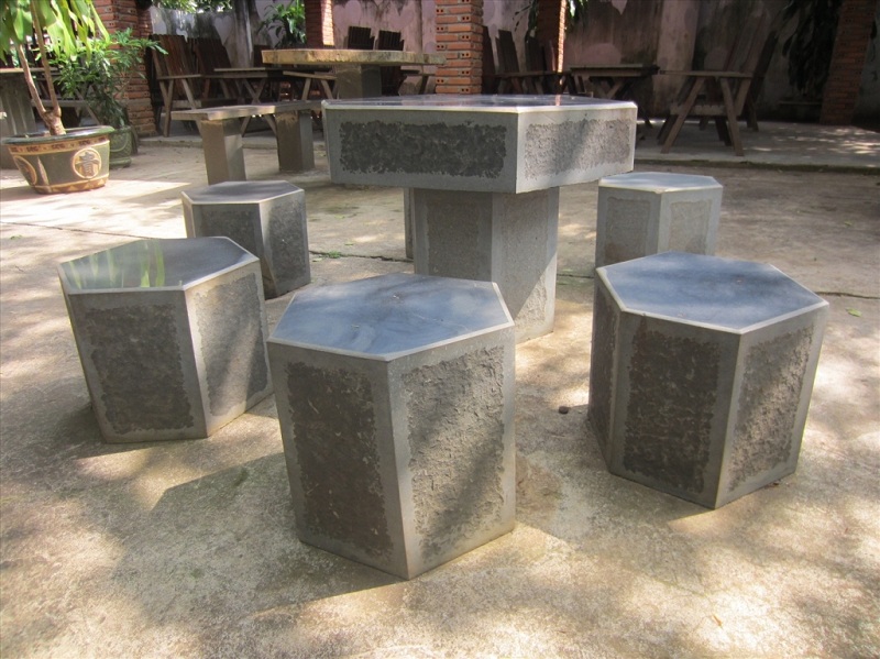 Bộ bàn ghế đá bazan giữ được nét nguyên sơ của từng khối đá.