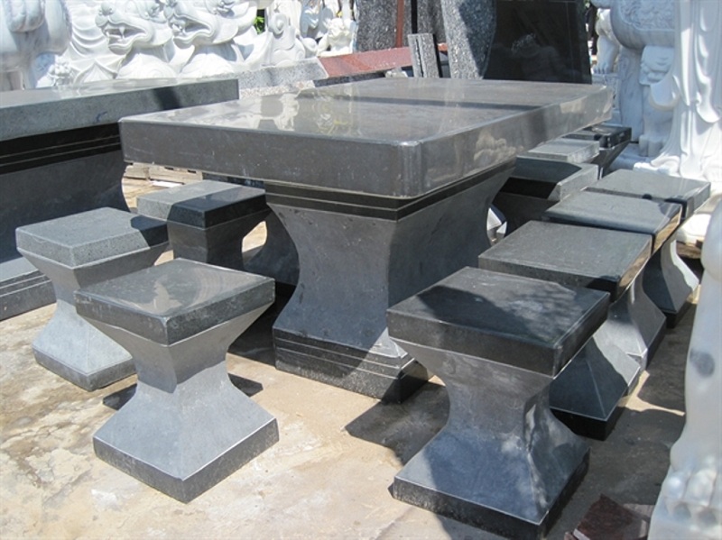 Đá hoa cương đen làm nên những bộ bàn ghế rất tinh tế, sang trọng dù không chạm khắc bất kì một hoa văn nào, chỉ cần đánh bóng bề mặt và phối màu một cách hợp lí.