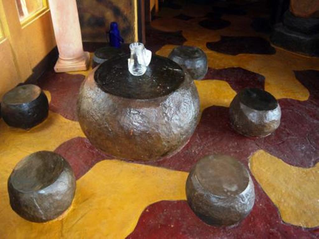 Đá trầm tích được đẽo gọt cầu kì thành bộ bàn ghế dáng tròn thú vị.