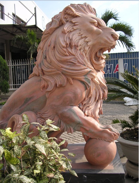 Tượng con sư tử đá tự nhiên màu đỏ hồng, bã trầu. Chế tác tại công ty. Liên hệ ngay đặt hàng.