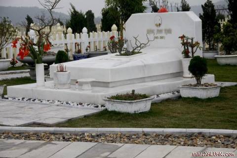 Mộ đá xanh đen được chạm chắc cầu kì.