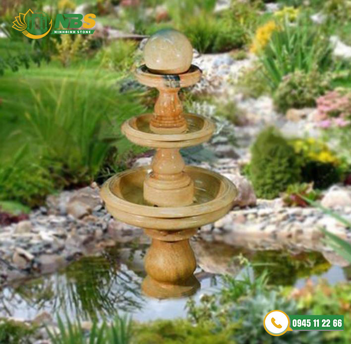 Bạn cũng có thể thiết kế tháp phun nước bằng đá vàng đẹp phân chia thành 3 tầng. Đi kèm với đó có thể là quả bóng xoay bi trang trí ở phía trên cùng. Phần đế được gia công, sản xuất từ đá vàng nguyên khối. Đài phun trong nhà nên lựa chọn chạm khắc đơn giản để đỡ rối mắt. Tuy đơn giản nhưng đảm bảo nó vẫn mang lại vẻ đẹp tinh tế cho không gian trong nhà.